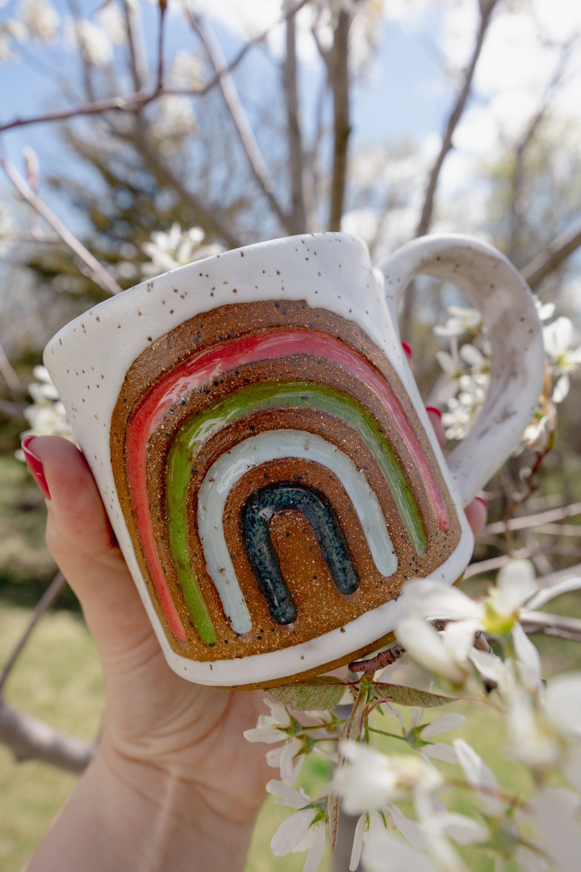 Why are there so many songs about rainbows? This mug magically evokes the joy of seeing an actual rainbow and customers swear their days start off with a smile when they pull this mug out of the cupboard. In fact, we received so many delightful DMs, that we started #TheRainbowMugConnection.